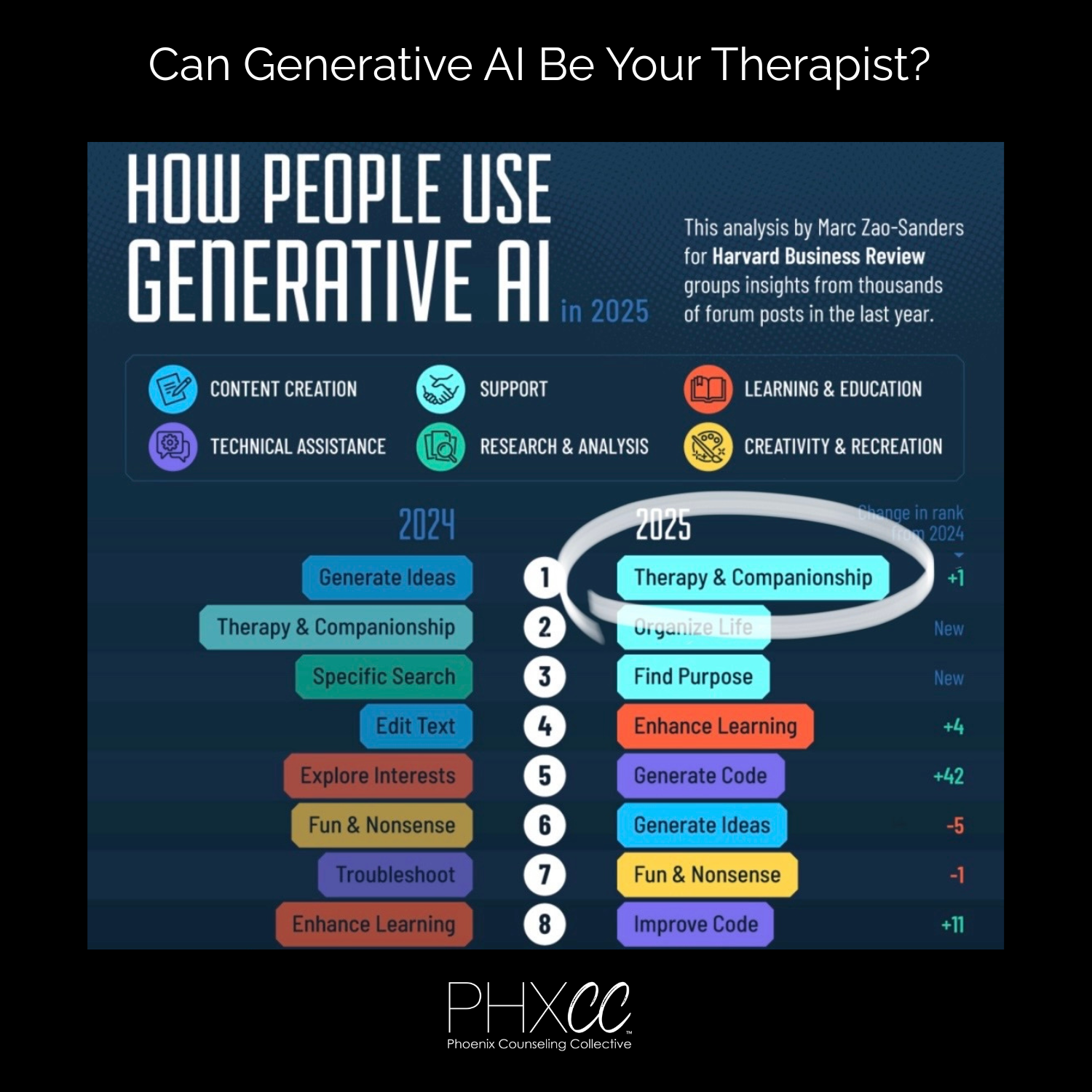 In talking to other therapists and those in the helping field there seems to be some anecdotal evidence that AI is taking a good bit of the market share of our industry. This collective sense that things are changing is strengthened by a 2025 Harvard Business Review Article that showed that the number one use […]